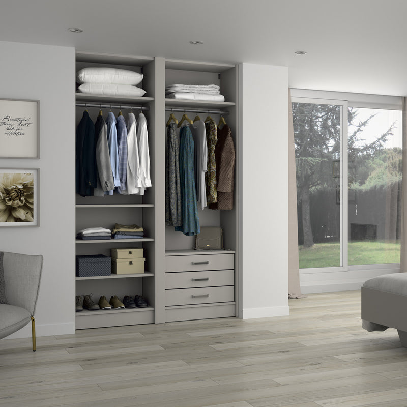 Aménagement 2 espaces, profondeur 550 mm, Moka, 2 tringles - 6 étagères - 3 tiroirs