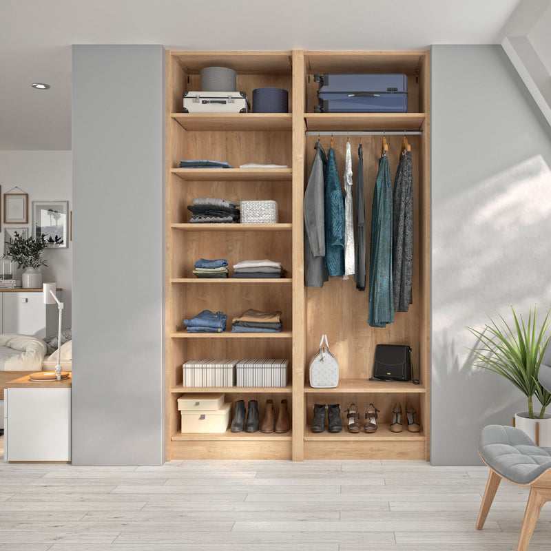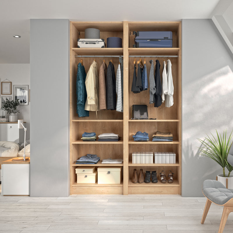 Aménagement 2 espaces, profondeur 550 mm, Chêne Blond, 2 tringles - 4 étagères