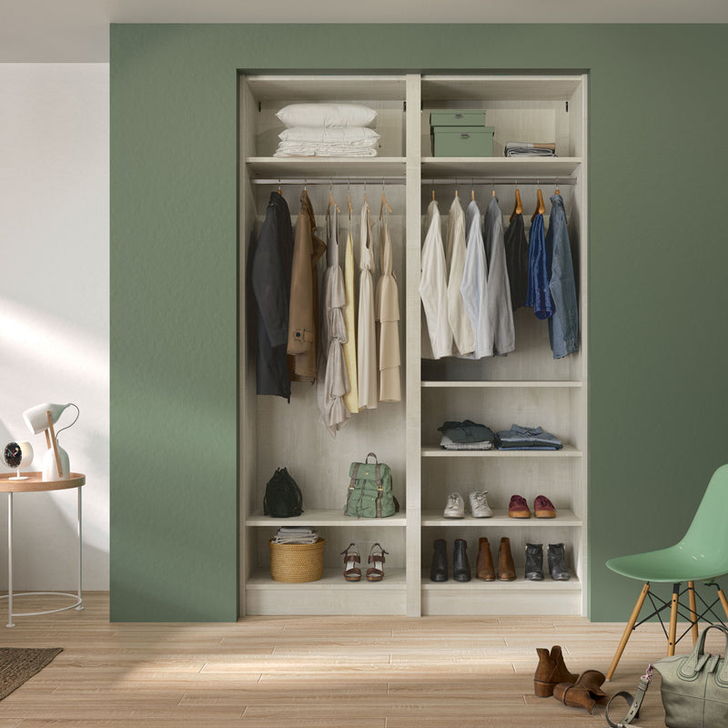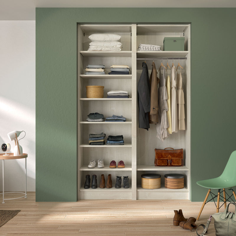 Aménagement 2 espaces, profondeur 465 mm, Bois Flotté Crème, 1 tringle - 8 étagères