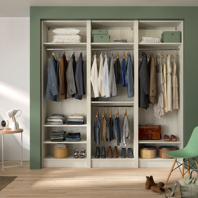 Aménagement 3 espaces, profondeur 465 mm, Bois Flotté Crème, 3 tringles - 8 étagères