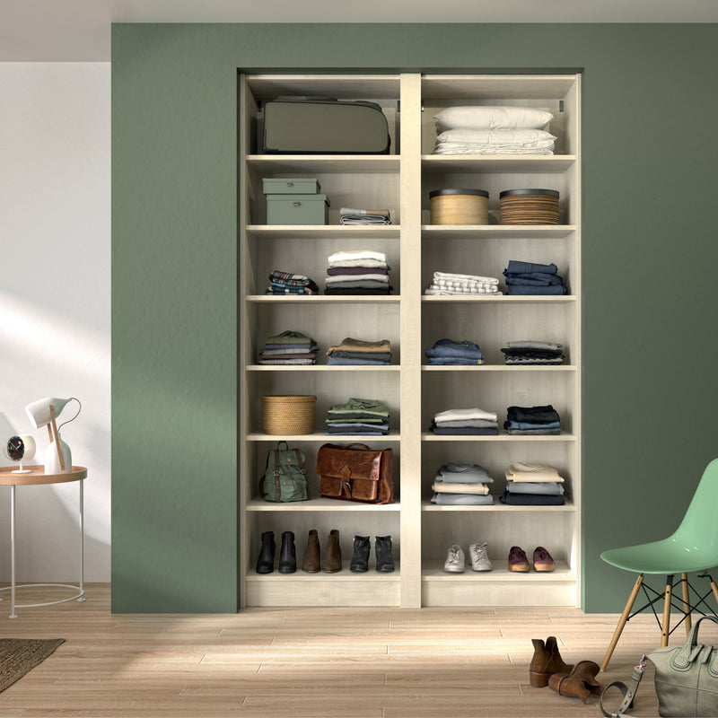 Aménagement 2 espaces, profondeur 465 mm, Bois Flotté Crème, - 12 étagères