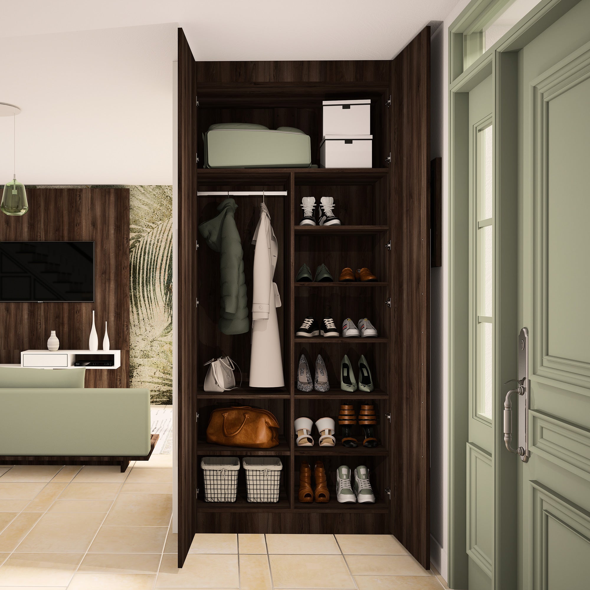 Ce dressing 2 espaces avec portes battantes toute hauteur Kazed trouvera facilement sa place dans votre pièce quelque soit l’espace disponible grâce à son option de mise à dimensions. Sa largeur et sa hauteur sont ajustables au mm près lui permettant de se glisser en intérieur ou en extérieur de niche. Sa profondeur de 595 mm (portes comprises) est fixe.
