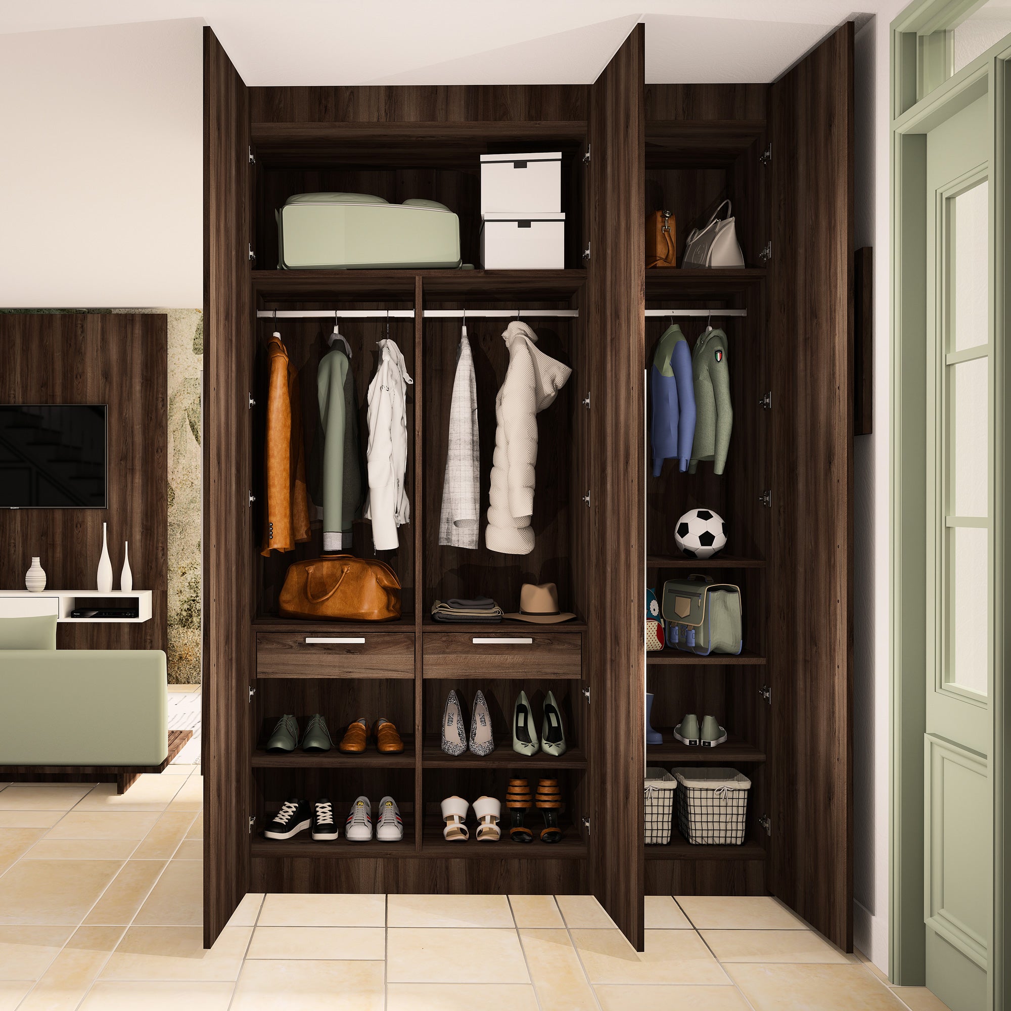 Aménagement composé de 3 tringles, 9 étagères et 2 tiroirs. Son décor Noyer des Andes, chaleureux et authentique, s’intégrera parfaitement à votre déco. Il s’harmonise avec tous les produits Kazed. Les poignées en aluminium brossé Naturel lui confèrent un charme unique.