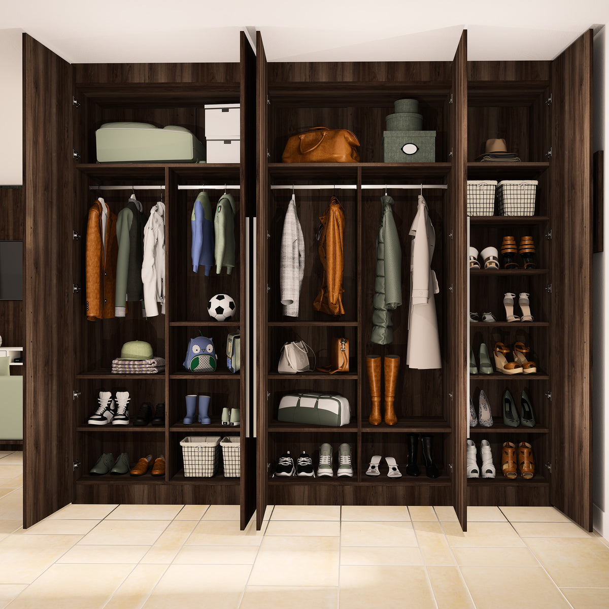Aménagement composé de 4 tringles et 17 étagères. Son décor Noyer des Andes, chaleureux et authentique, s’intégrera parfaitement à votre déco. Il s’harmonise avec tous les produits Kazed. Les poignées en aluminium brossé Naturel lui confèrent un charme unique.