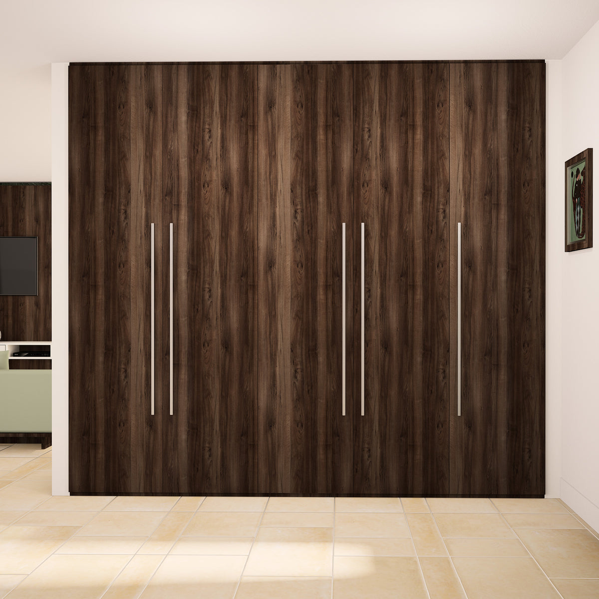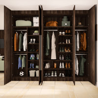 Aménagement composé de 5 tringles et 14 étagères. Son décor Noyer des Andes, chaleureux et authentique, s’intégrera parfaitement à votre déco. Il s’harmonise avec tous les produits Kazed. Les poignées en aluminium brossé Naturel lui confèrent un charme unique.