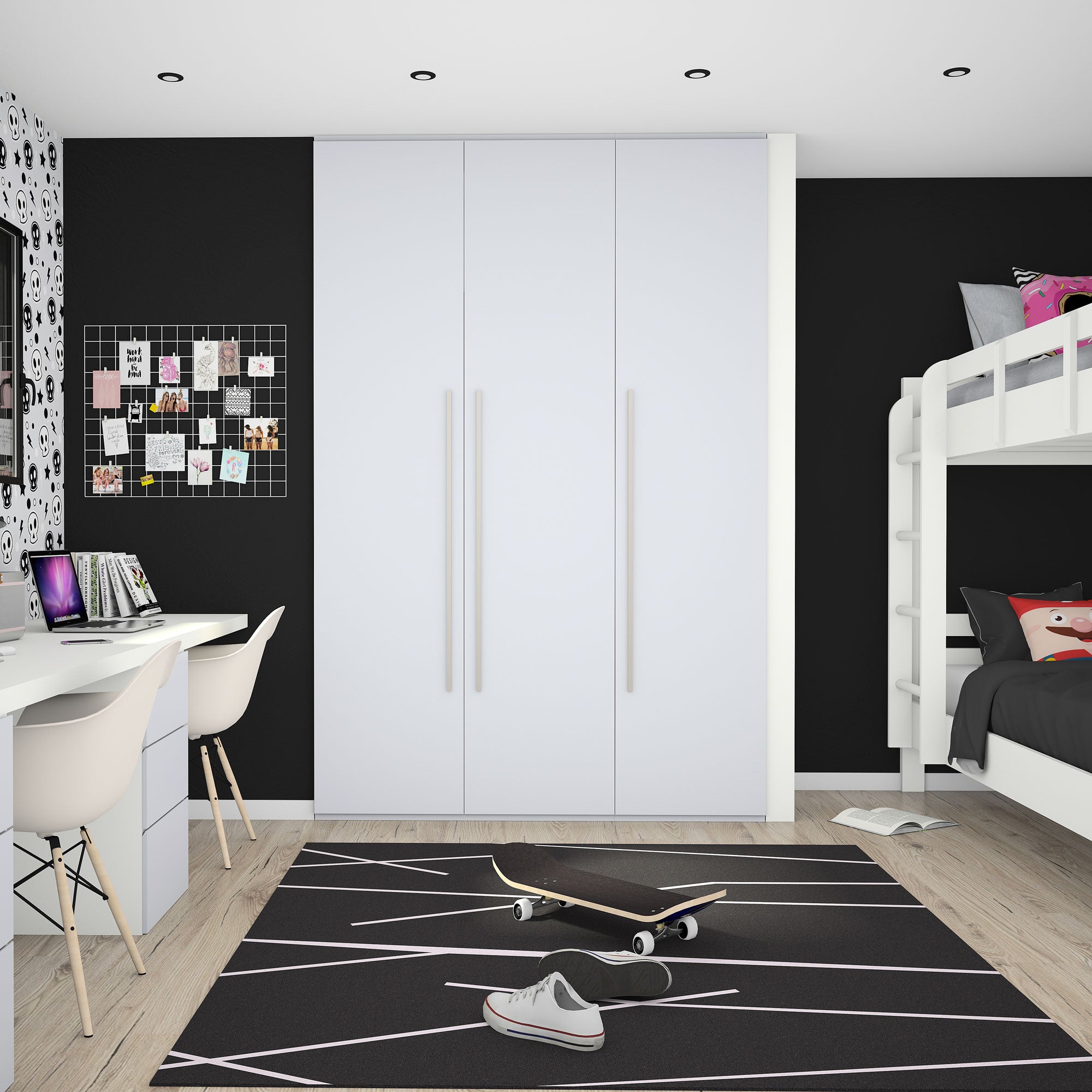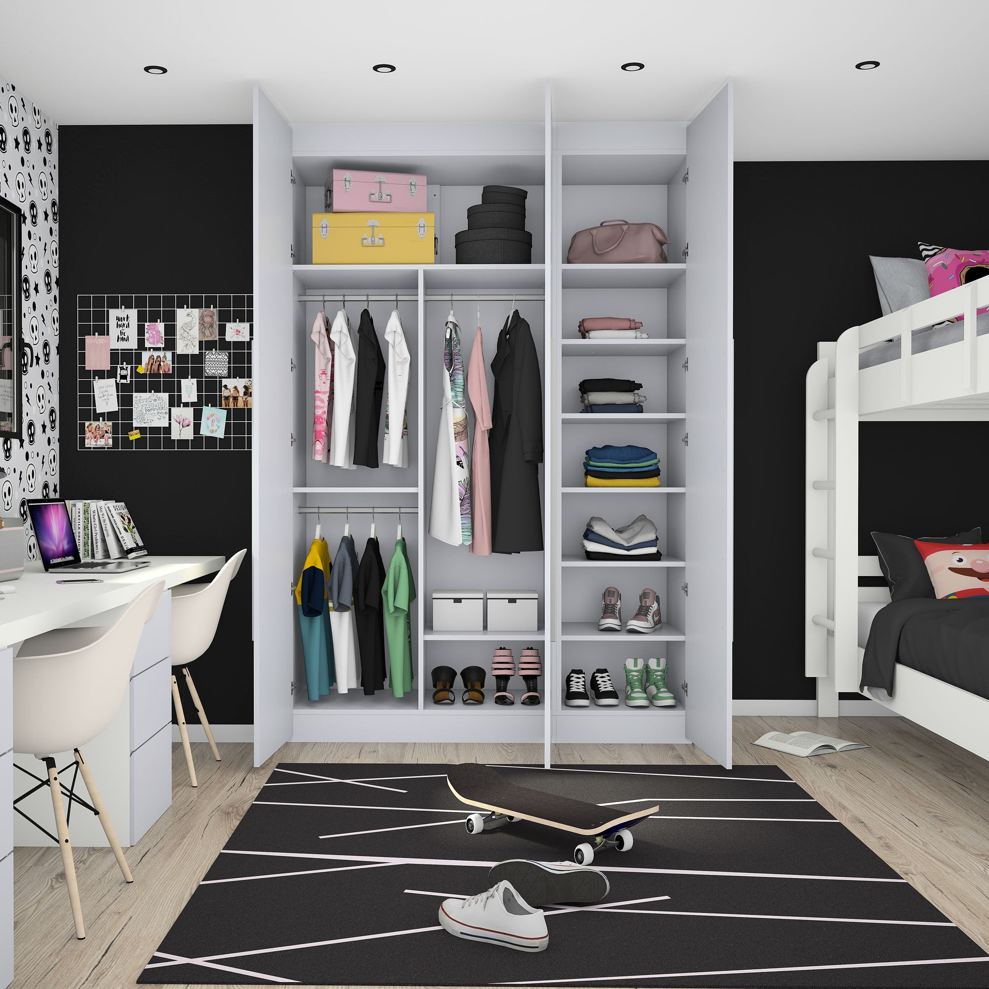 Ce dressing 3 espaces avec portes battantes toute hauteur Kazed trouvera facilement sa place dans votre pièce quelque soit l’espace disponible grâce à son option de mise à dimensions. Sa largeur et sa hauteur sont ajustables au mm près lui permettant de se glisser en intérieur ou en extérieur de niche. Sa profondeur de 595 mm (portes comprises) est fixe.