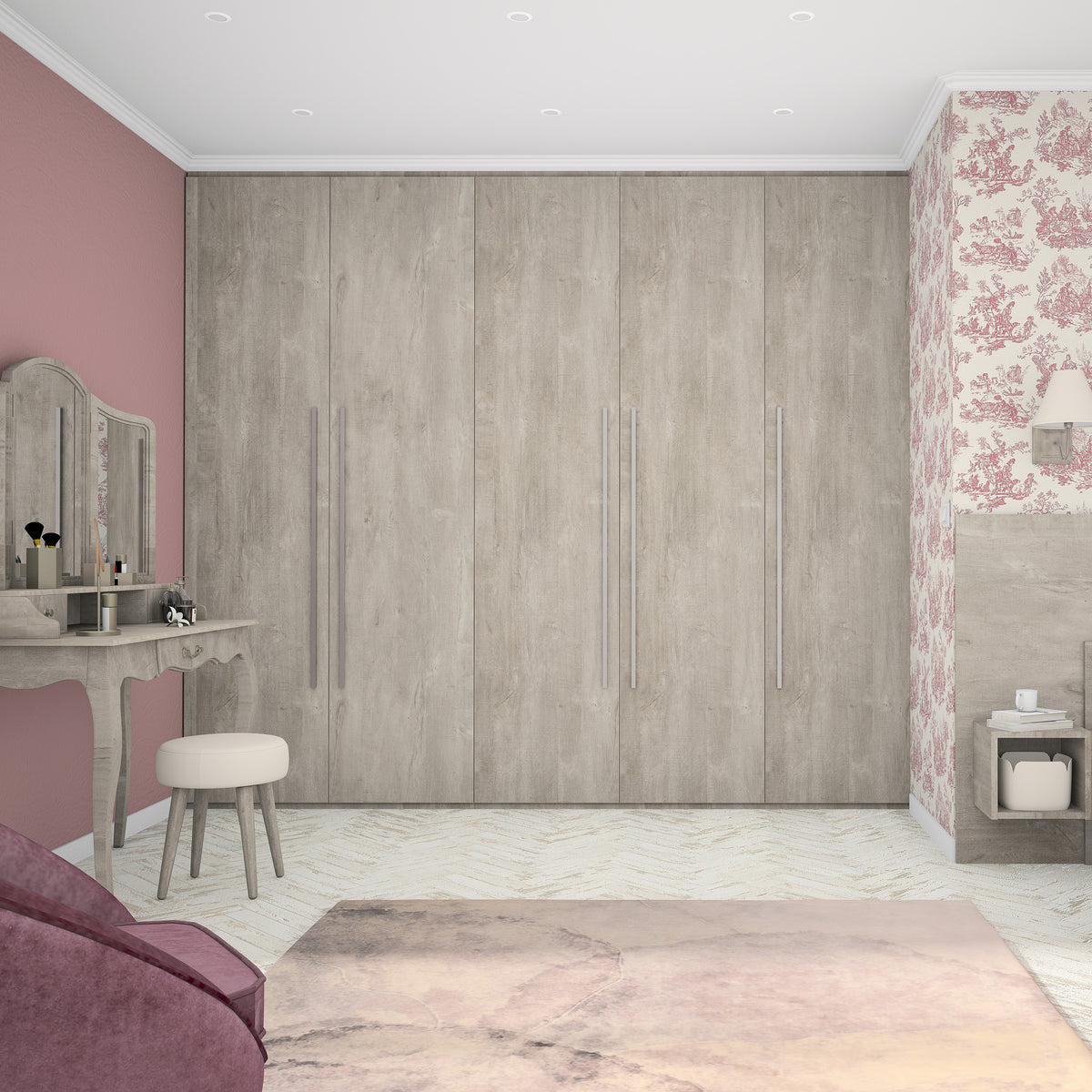 Ce dressing 5 espaces avec portes battantes toute hauteur Kazed trouvera facilement sa place dans votre pièce quelque soit l’espace disponible grâce à son option de mise à dimensions. Sa largeur et sa hauteur sont ajustables au mm près lui permettant de se glisser en intérieur ou en extérieur de niche. Sa profondeur de 595 mm (portes comprises) est fixe.