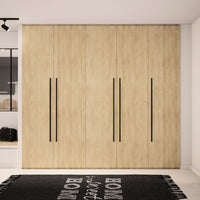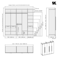 Ce dressing 5 espaces avec portes battantes toute hauteur Kazed trouvera facilement sa place dans votre pièce quelque soit l’espace disponible grâce à son option de mise à dimensions. Sa largeur et sa hauteur sont ajustables au mm près lui permettant de se glisser en intérieur ou en extérieur de niche. Sa profondeur de 595 mm (portes comprises) est fixe.