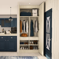 Ce dressing 2 espaces avec portes battantes toute hauteur Kazed trouvera facilement sa place dans votre pièce quelque soit l’espace disponible grâce à son option de mise à dimensions. Sa largeur et sa hauteur sont ajustables au mm près lui permettant de se glisser en intérieur ou en extérieur de niche. Sa profondeur de 595 mm (portes comprises) est fixe.