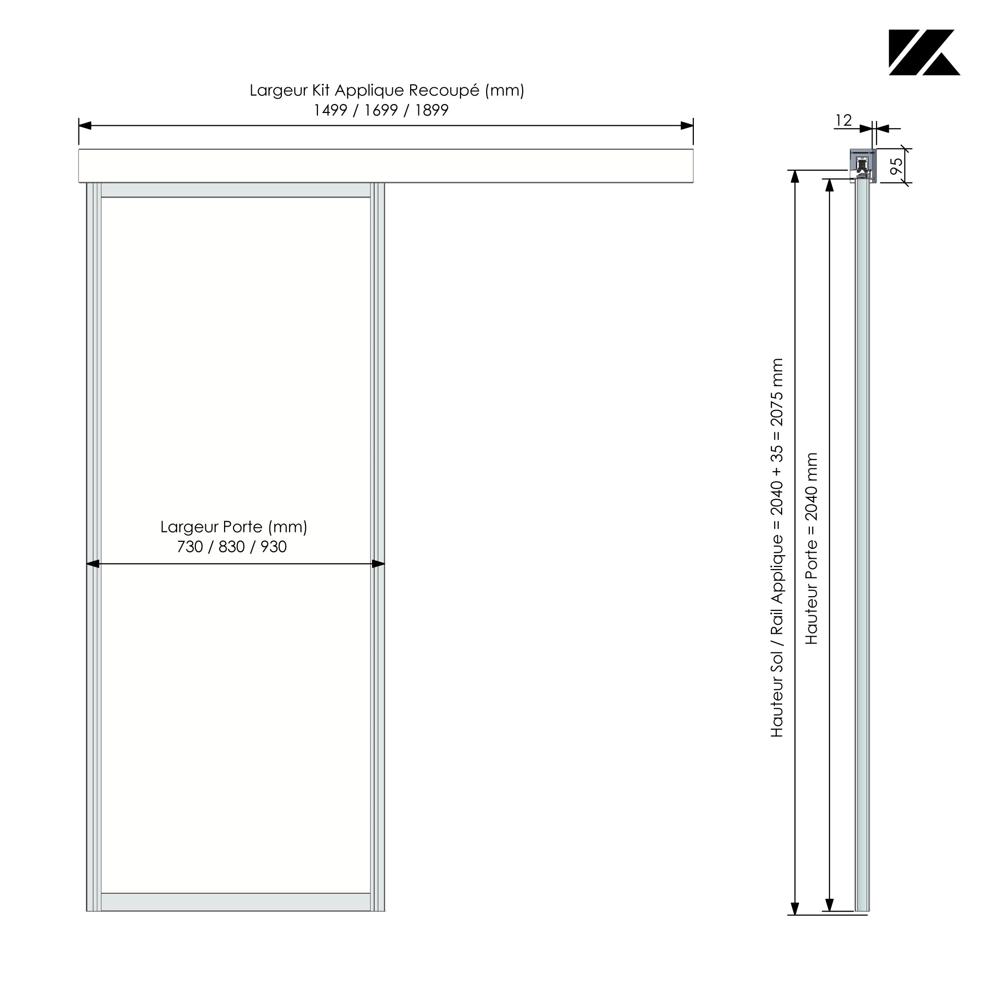Pack complet : Porte coulissante avec amortisseur + rail en applique + cache rail recoupable.