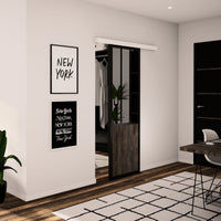 Le style Atelier de cette porte en applique coulissante Kazed est à tomber. Le miroir Plomb est sublimé par de jolies traverses verticales. Le décor Bois fumé brut sur la partie inférieure de cette porte de séparation lui apporte un aspect chaleureux. Robuste et fiable, sa structure est en aluminium.