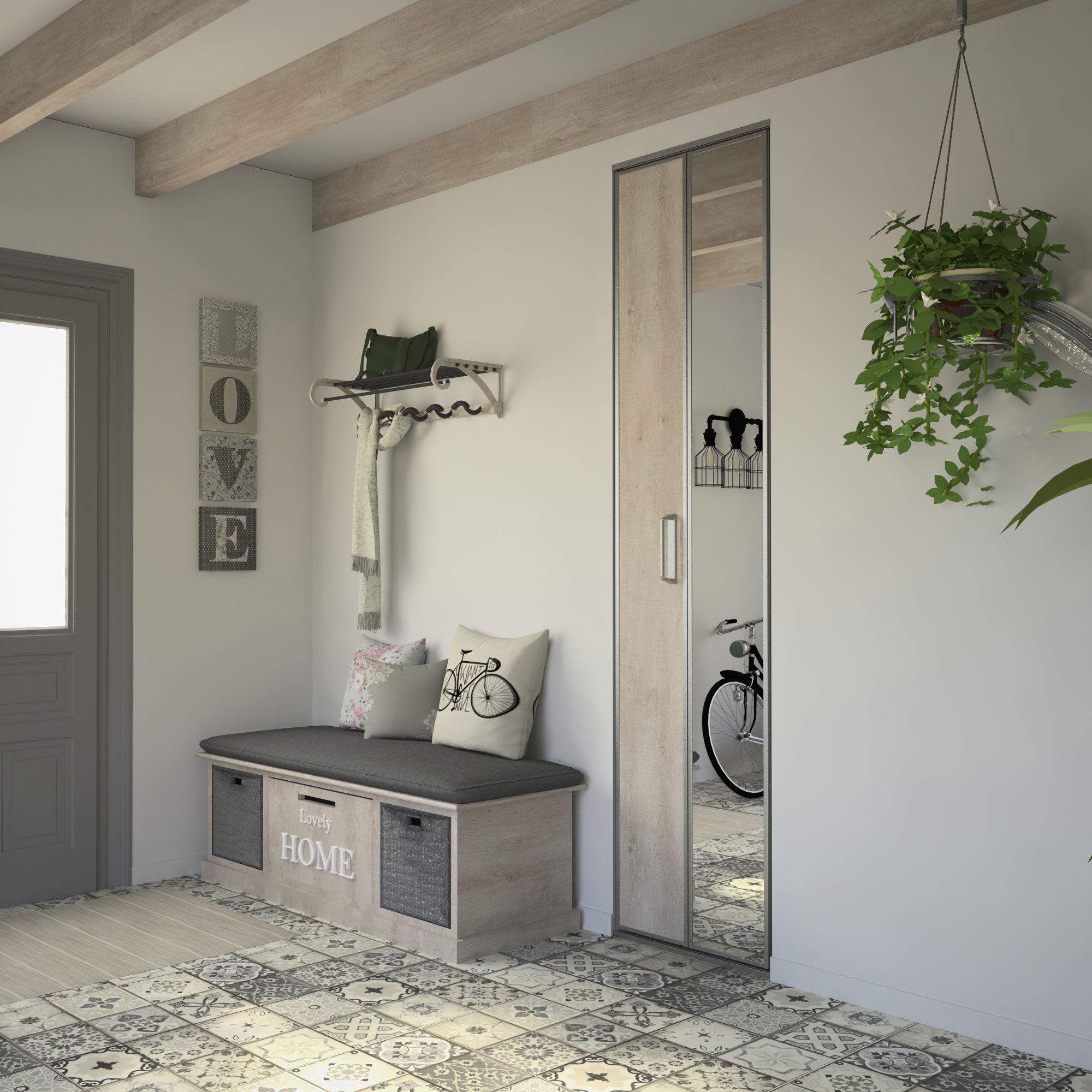 L’entrée d’une maison est souvent une pièce stratégique car elle nécessite d’aménager des rangements dans un petit espace. Peu encombrantes, ces portes pliantes en Chêne flanelle et miroir argenté sont idéales.