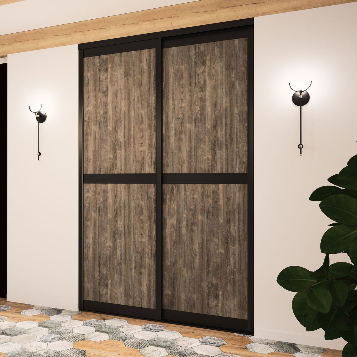 On adore cette façade coulissante ! Ses décors chaleureux effet Capanna brun sont élégamment accompagnés de finitions en aluminium noir brut. Sa composition de caractère apportera une touche finale authentique à votre intérieur !