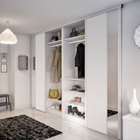 En position ouverte, les deux portes sont positionnées devant les murs adjacents à la niche. Vous devez donc prévoir l’espace nécessaire de part et d’autre de la niche pour avoir un accès total à votre rangement.