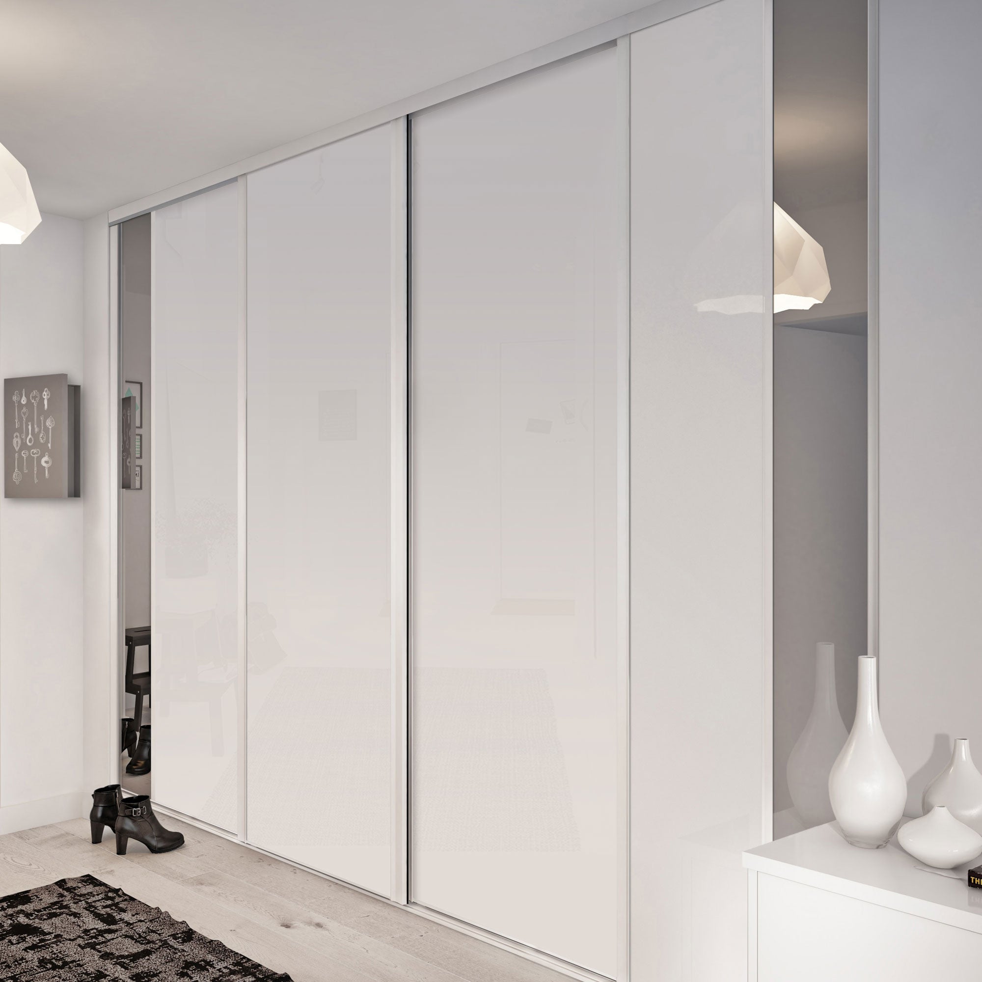 Quoi de mieux pour faire resplendir un intérieur que ce mariage de verre laqué blanc pur et de miroirs argent ? La finition en alumium blanc mat renforce l'effet lumineux de ces deux portes de placard coulissantes.
