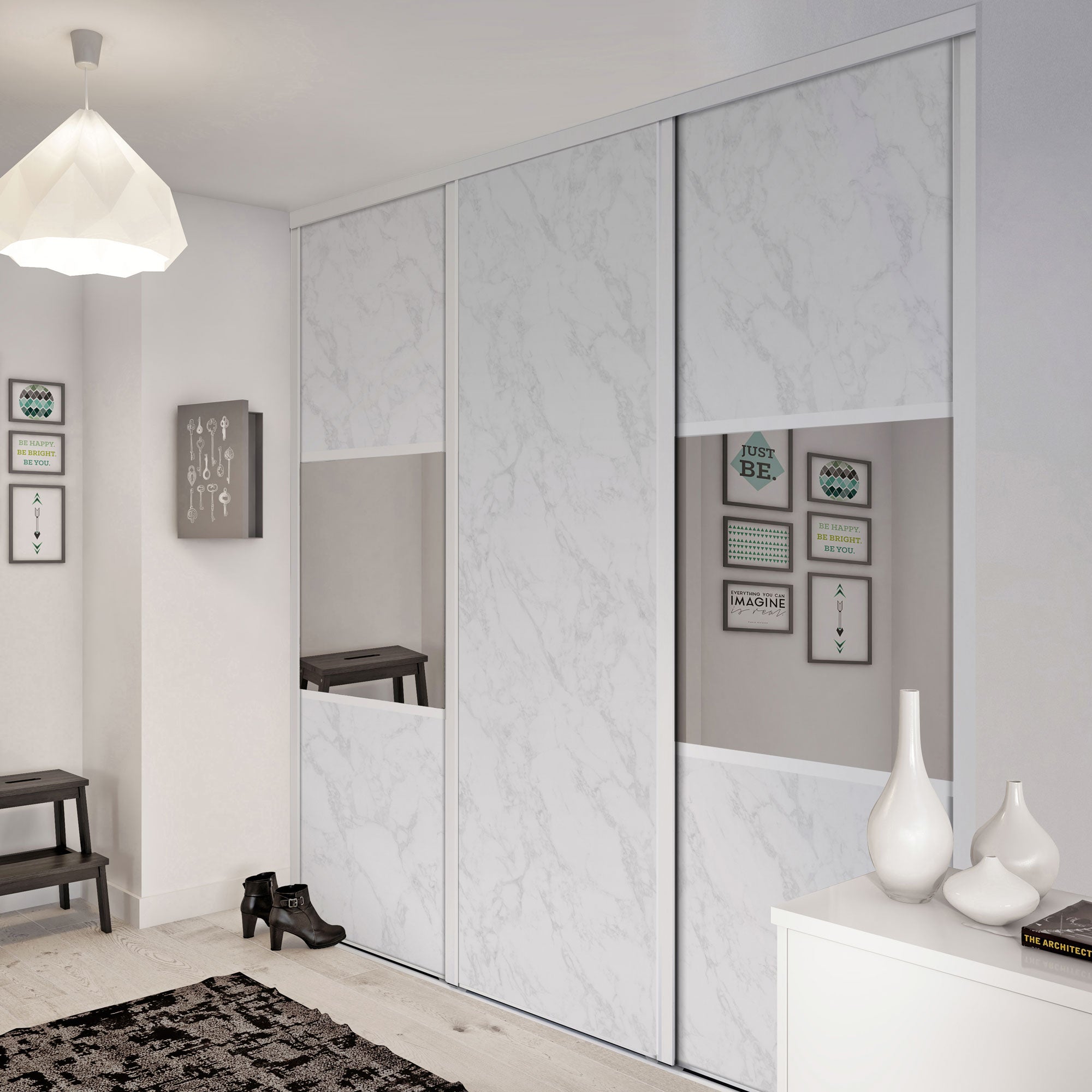 Composition porte 3 : Mélaminé Marbre Blanc - Miroir Argent - Mélaminé Marbre Blanc
