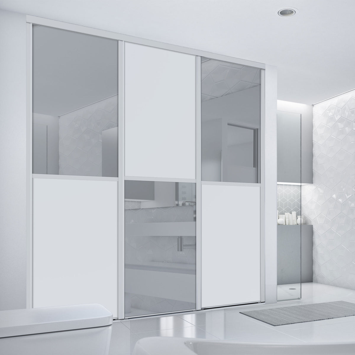 Cette façade de placard sera telle un petit bijou dans votre intérieur. Son effet damier apporte originalité, son blanc mat élégance, et son miroir argent luminosité. Elle est habillée de profils en acier laqués de blanc pour un joli mariage intemporel.