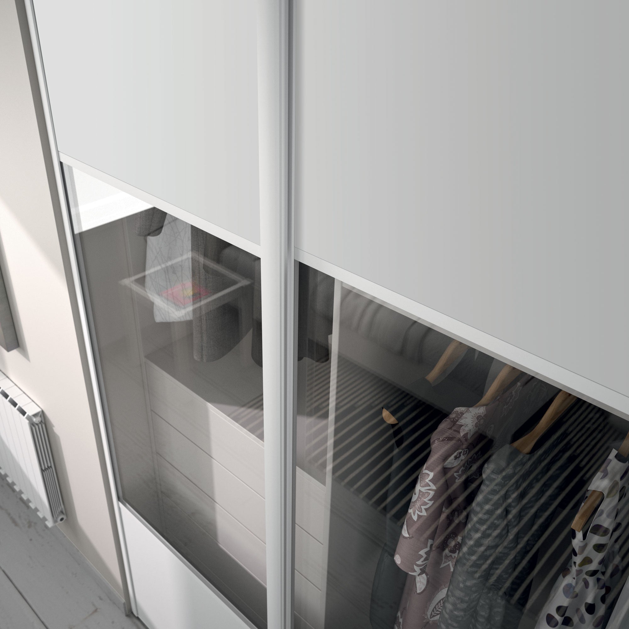Les mystères du cercle polaire Artique se révélent dans votre chambre ! Centrale, la vitre claire de cette façade de placard coulissante dévoilera joliment un dressing. Le blanc mat et les finitions en aluminium assorties forment un duo vivifiant !