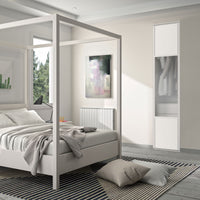 Les mystères du cercle polaire Artique se révélent dans votre chambre ! Centrale, la vitre dépolie de cette porte pivotante de placard mettra subtilement en valeur un dressing. Le blanc mat et les finitions en aluminium assorties forment un duo vivifiant !