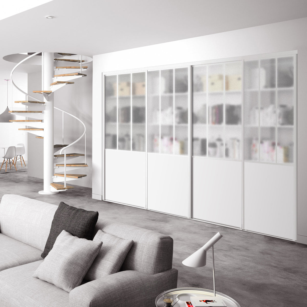 Cette façade de 4 portes de placard coulissantes est idéale pour les espaces de rangement supérieurs à 4 mètres de large.