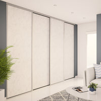 Cette façade de 4 portes de placard coulissantes est idéale pour les espaces de rangement supérieurs à 4 mètres de large.
