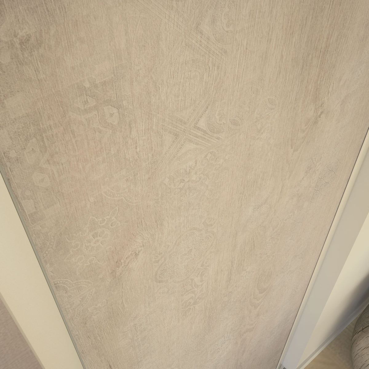 Comment ne pas succomber au charme de cette façade pivotante d'une porte au style bohème? Son miroir argent et sa structure au finition blanc mat subliment le décor Bois Bohème de cette composition.