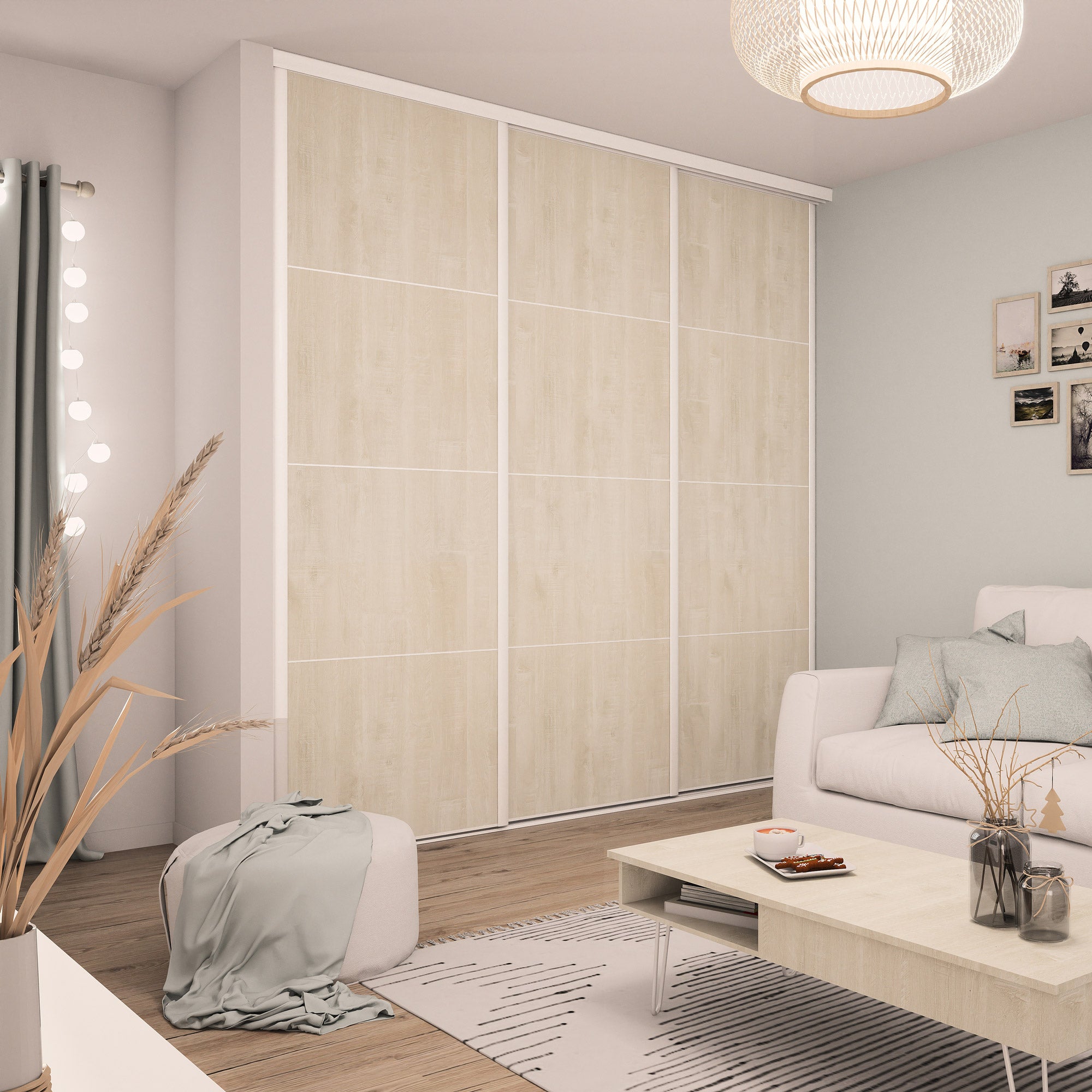 Composition porte 3 : Mélaminé Bois Flotté Crème - Mélaminé Bois Flotté Crème - Mélaminé Bois Flotté Crème - Mélaminé Bois Flotté Crème