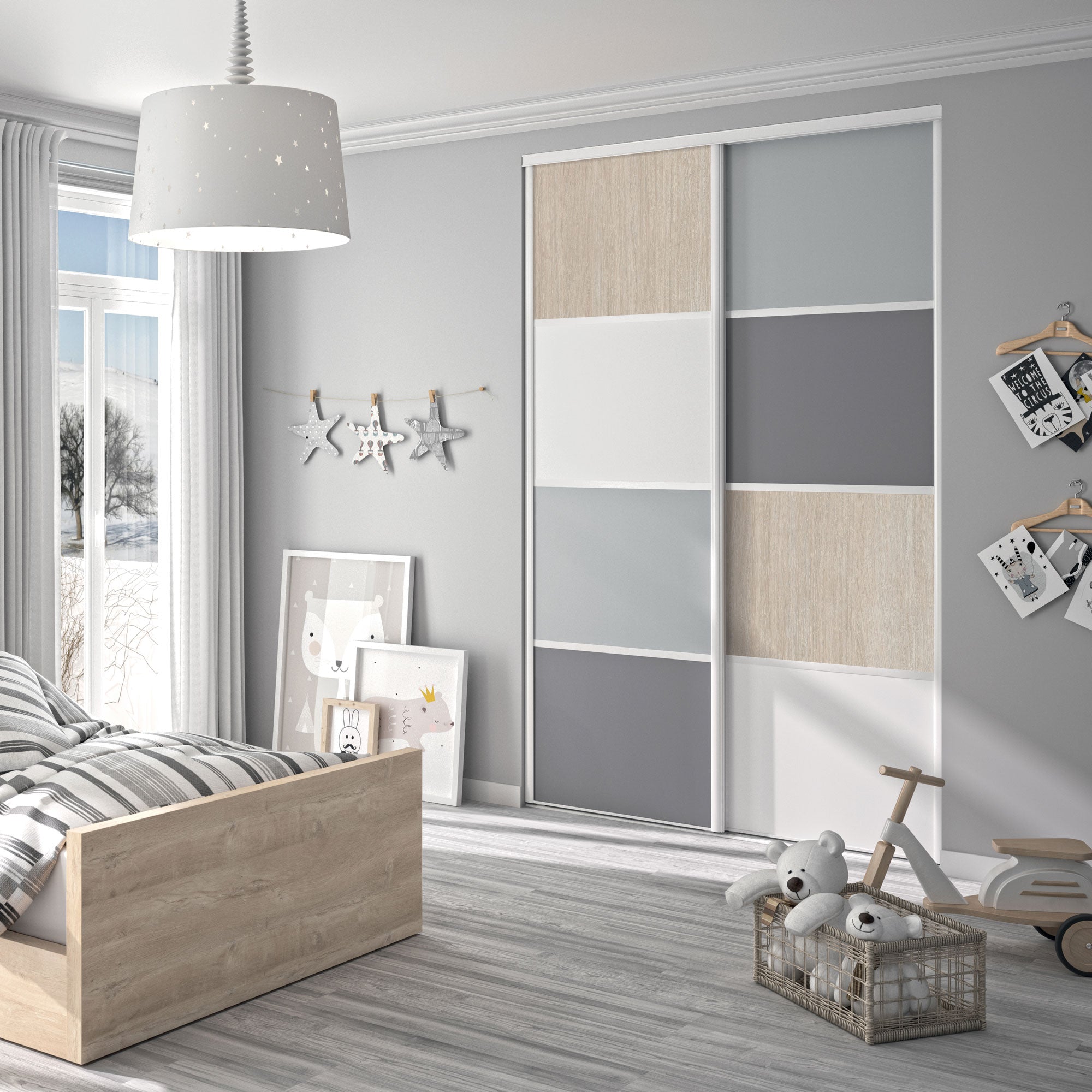 Cette façade de placard intemporelle sera idéale pour la chambre de votre enfant. Elle s'adaptera à tous les âges et pourra également être installée dans d'autres pièces de votre maison. Les portes en effet bois patiné rose, blanc mat, gris galet et gris intense sont habillées d'acier laqué blanc et vous plongeront dans un univers très scandinave.