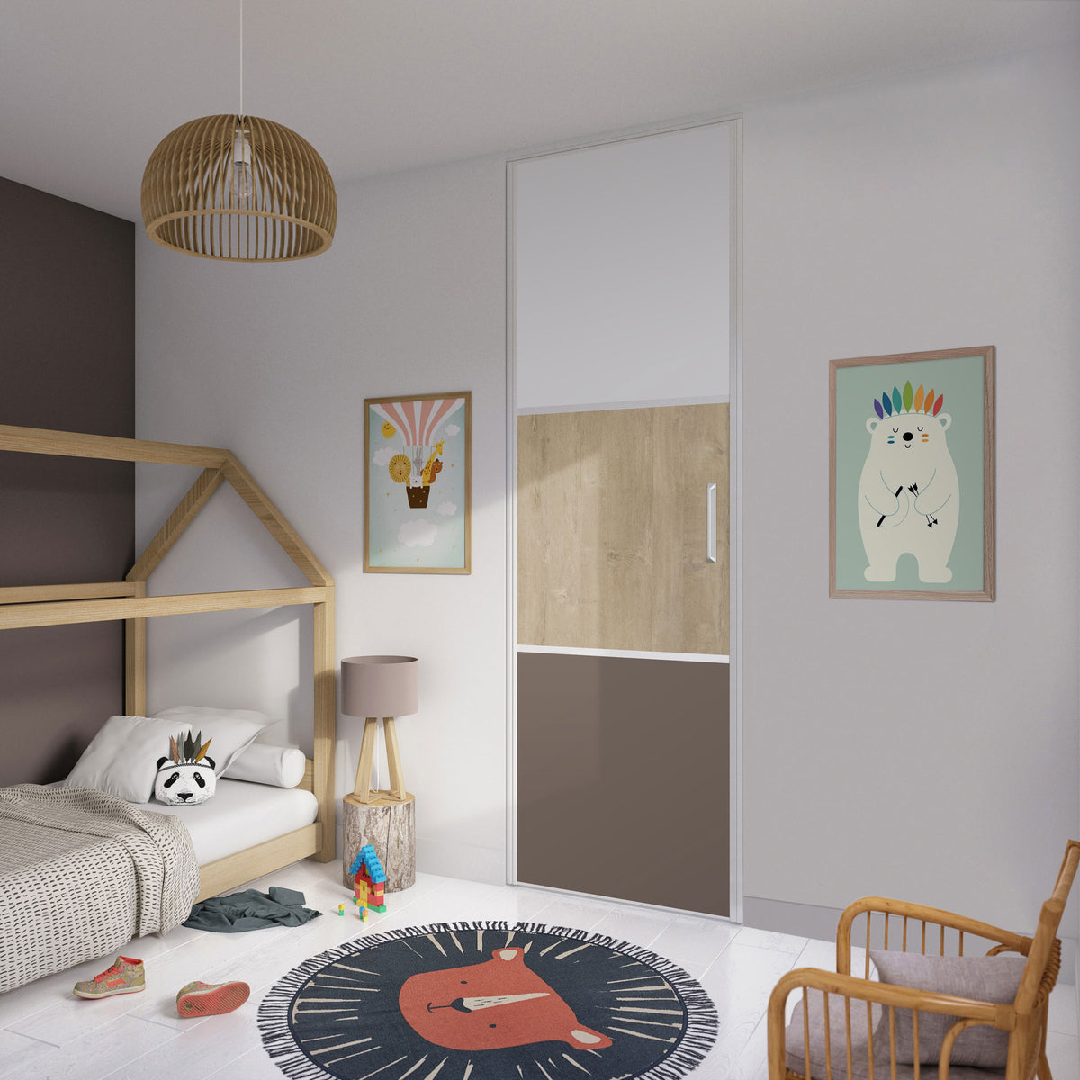 Apportez du caractère à la pièce préférée de votre enfant. Créez-lui un espace qu'il pourra garder le plus longtemps possible avec des matériaux de qualité. Ici, on retrouve une porte pivotante avec des couleurs telles que le Blanc mat, le Chêne Blond et le Châtaigne, assemblé sur une structure en Blanc Mat qui sera plaire à tous les enfants par son harmonie parfaite.