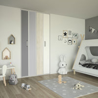 Impossible de choisir entre les décors gris intense, gris galet, bois flotté crème et blanc mat ? Ne le faites pas grâce à ces portes de placard pliantes dont la structure est en aluminium blanc mat !