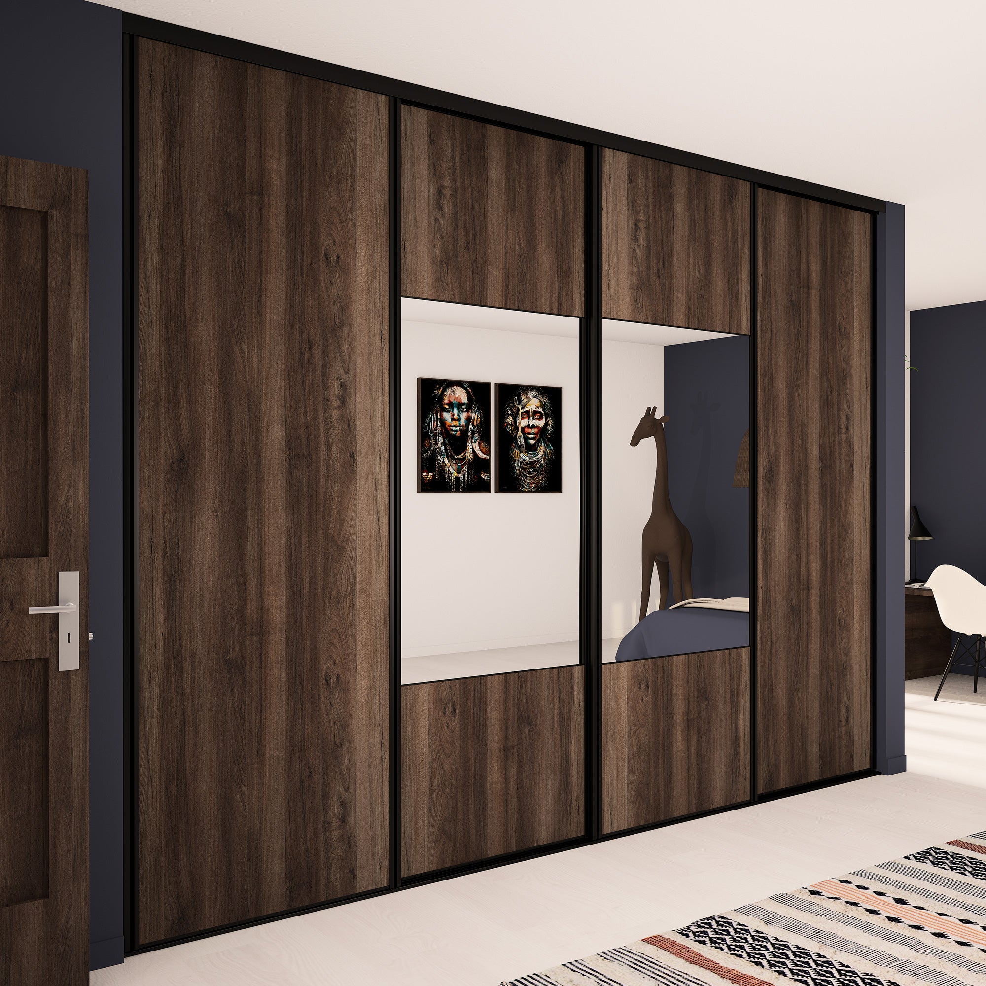 Cette façade de 4 portes de placard coulissantes est idéale pour les espaces de rangement supérieurs à 4 mètres de large.