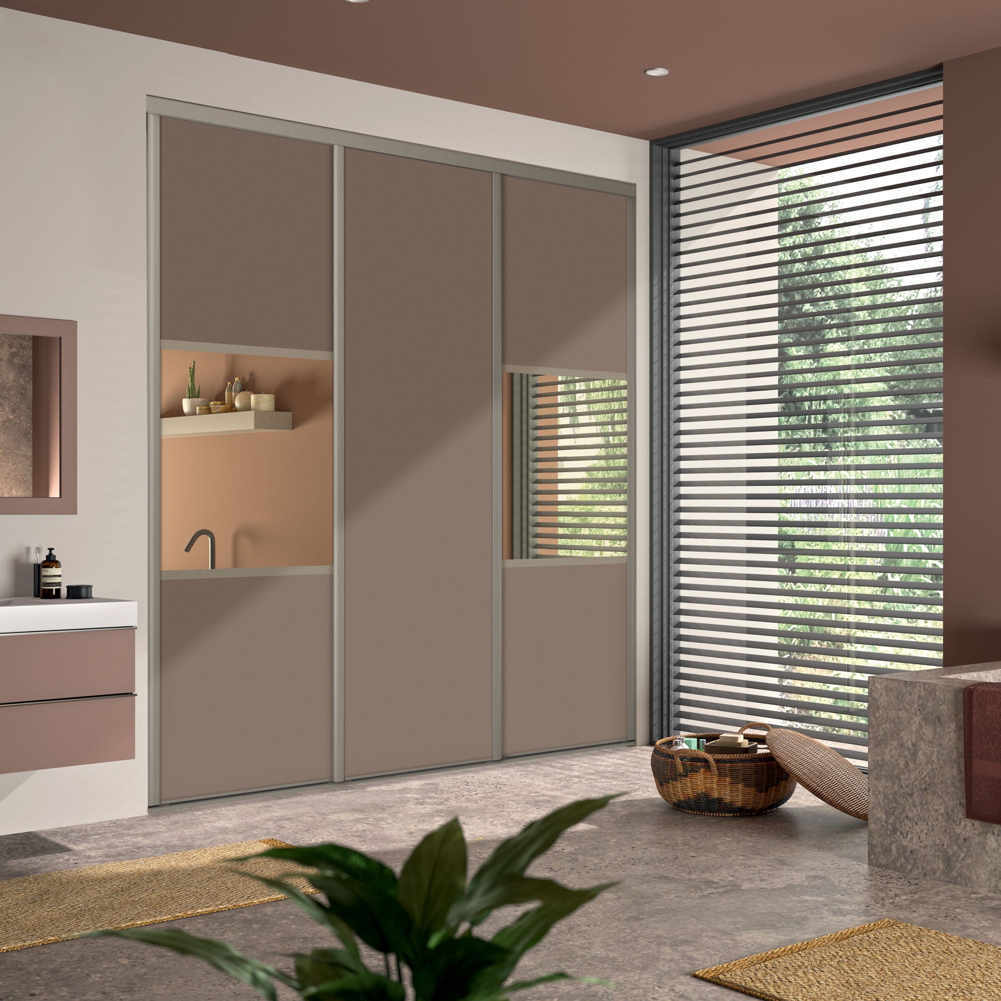 Composition porte 3 : Mélaminé Châtaigne - Miroir Bronze - Mélaminé Châtaigne