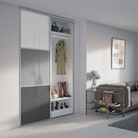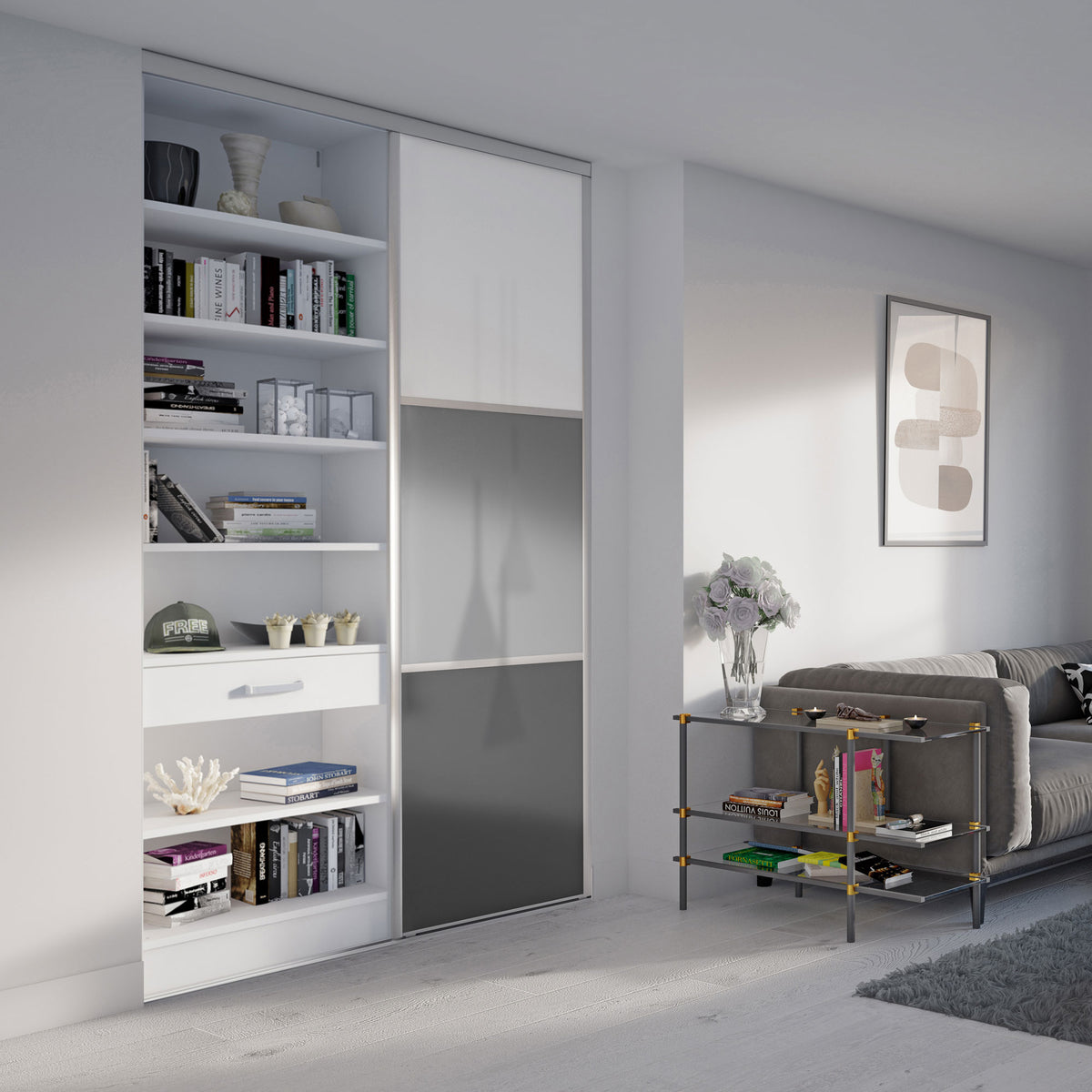 Façade de placard coulissante 1 porte décor blanc mat, décor gris galet, décor gris intense