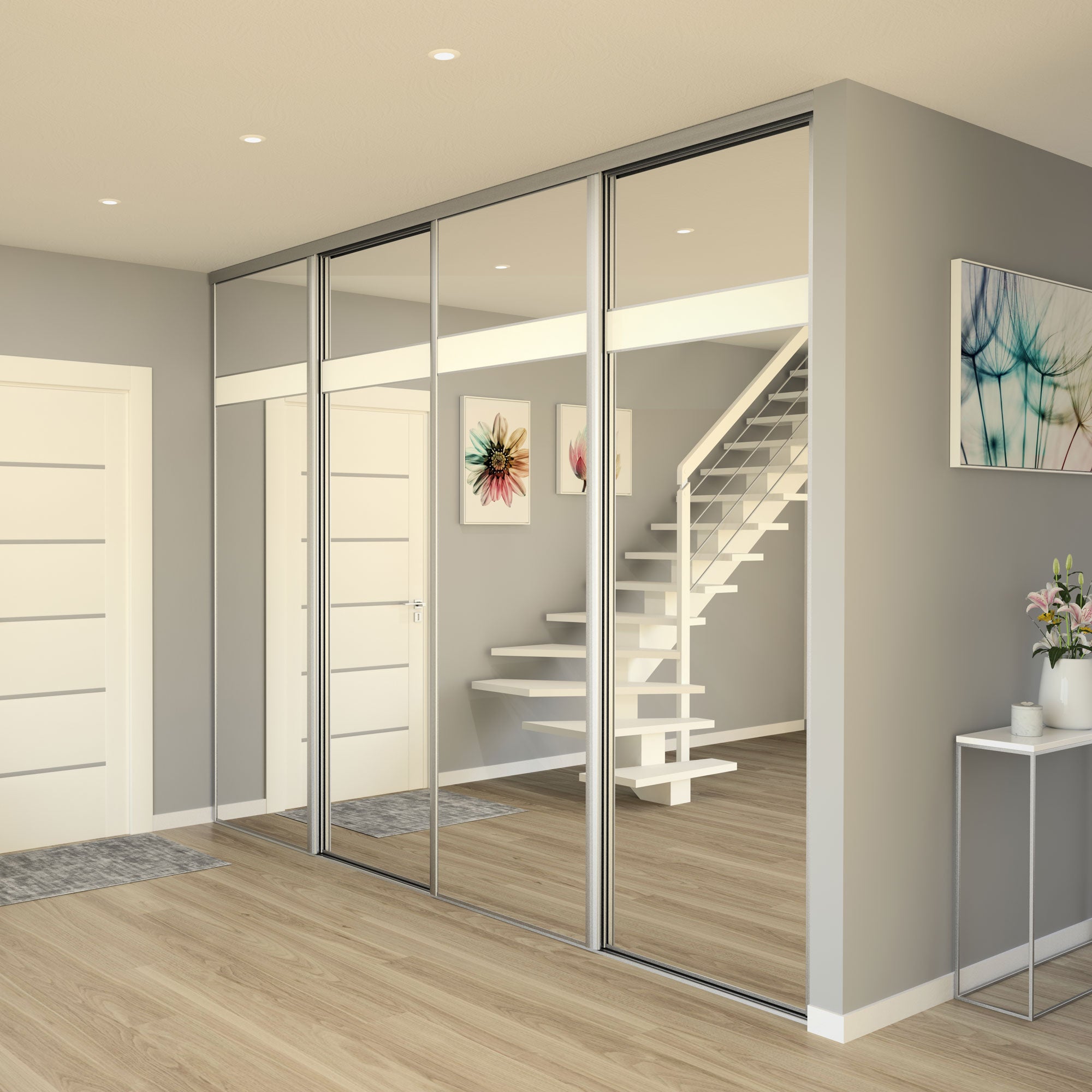 Composition porte 4 : Miroir Argent - Mélaminé Blanc Mat - Miroir Argent