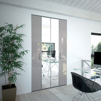 Une ouverture pliante pour le gain de place, du verre laqué gris perle pour l’élégance, une structure en aluminium pour l’esthétisme, et un miroir argent offrant profondeur et luminosité, cette porte de placard n’offre que des avantages !