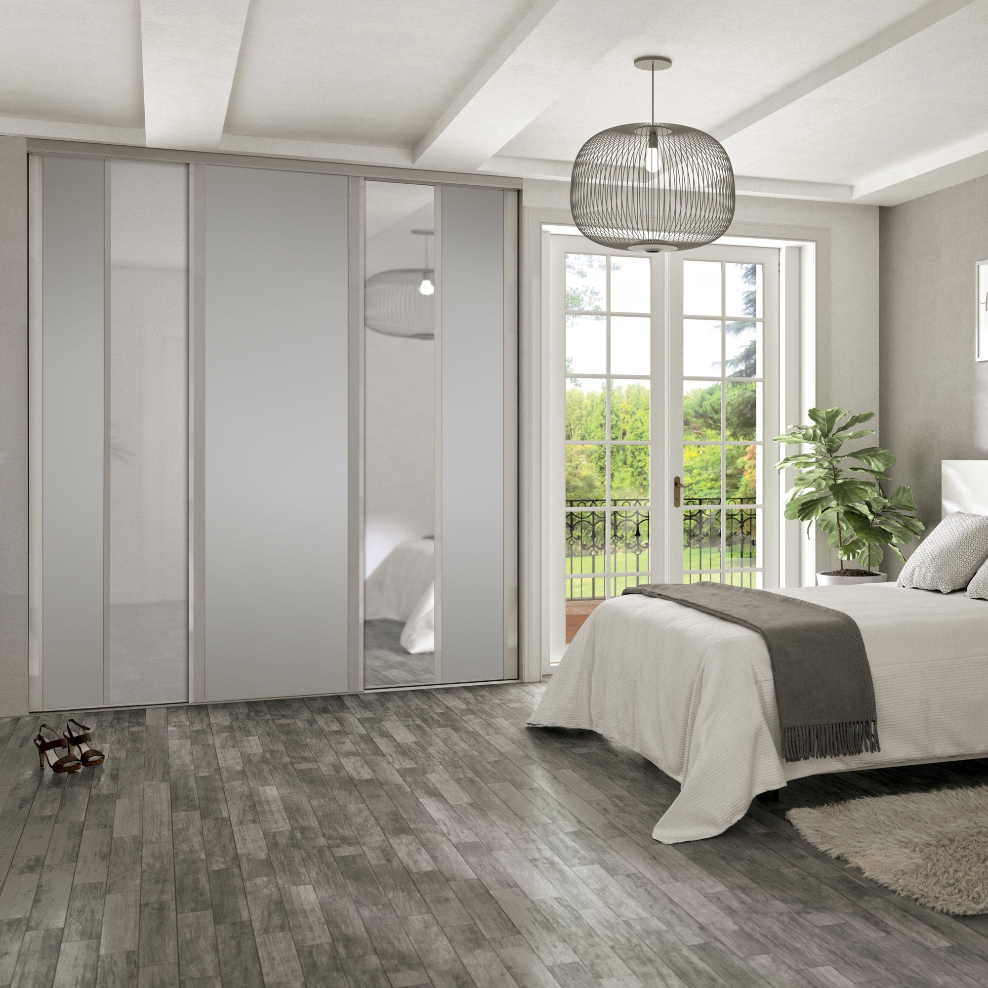 Cette Collection tout en verticalité, associe un Gris galet mat et intemporel à un miroir Argent brillant et lumineux. Le tout forme une composition de portes de placard élégante et indémodable qui trouvera facilement sa place dans toutes les pièces de la maison.