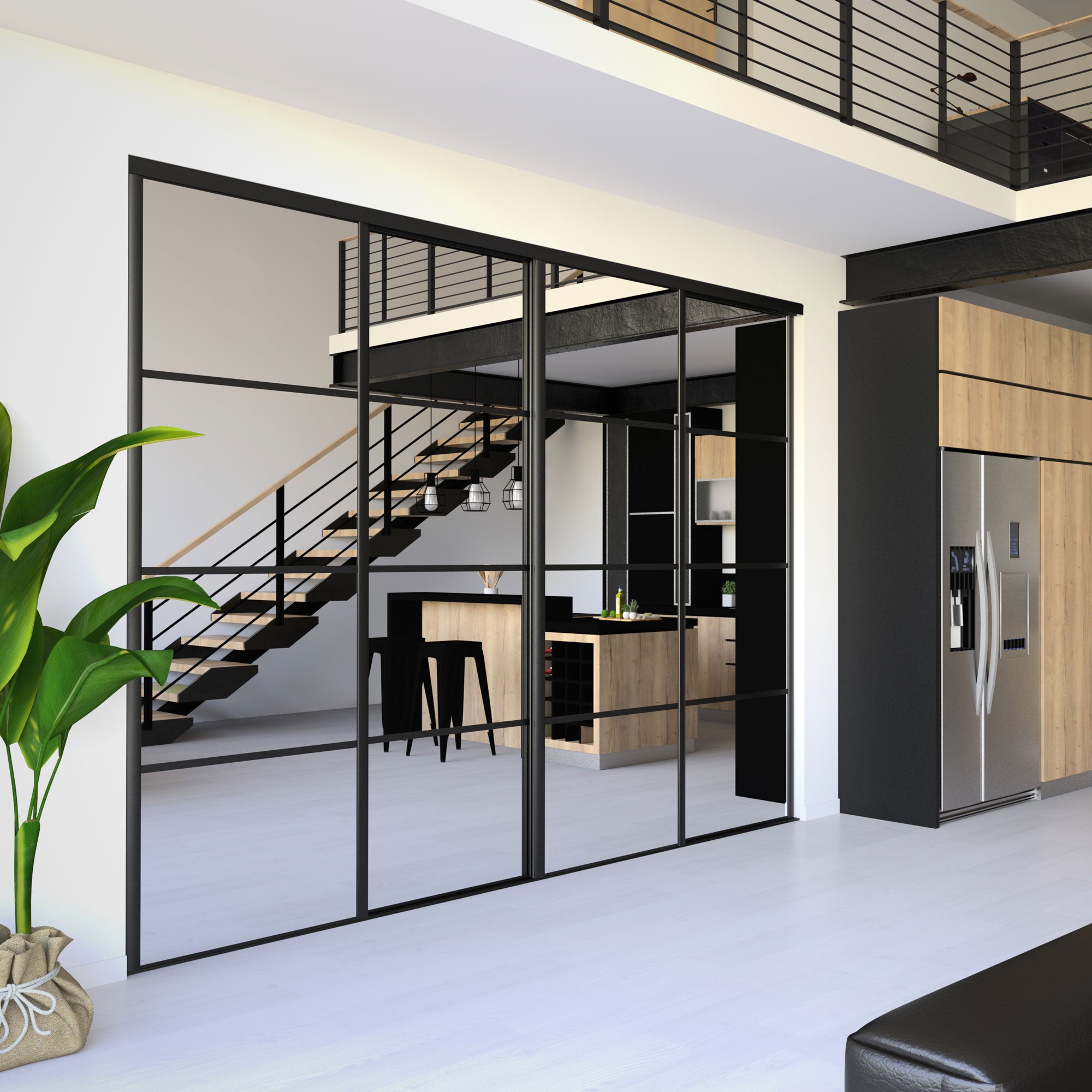 Donnez un style moderne et éclatant à votre pièce en optant pour cette façade de placard coulissante tout miroir. Couleur Argent, les miroirs sont mis en valeur par une poignée et des finitions en Alu Noir mat. Elle offrira de la luminosité à votre intérieur.