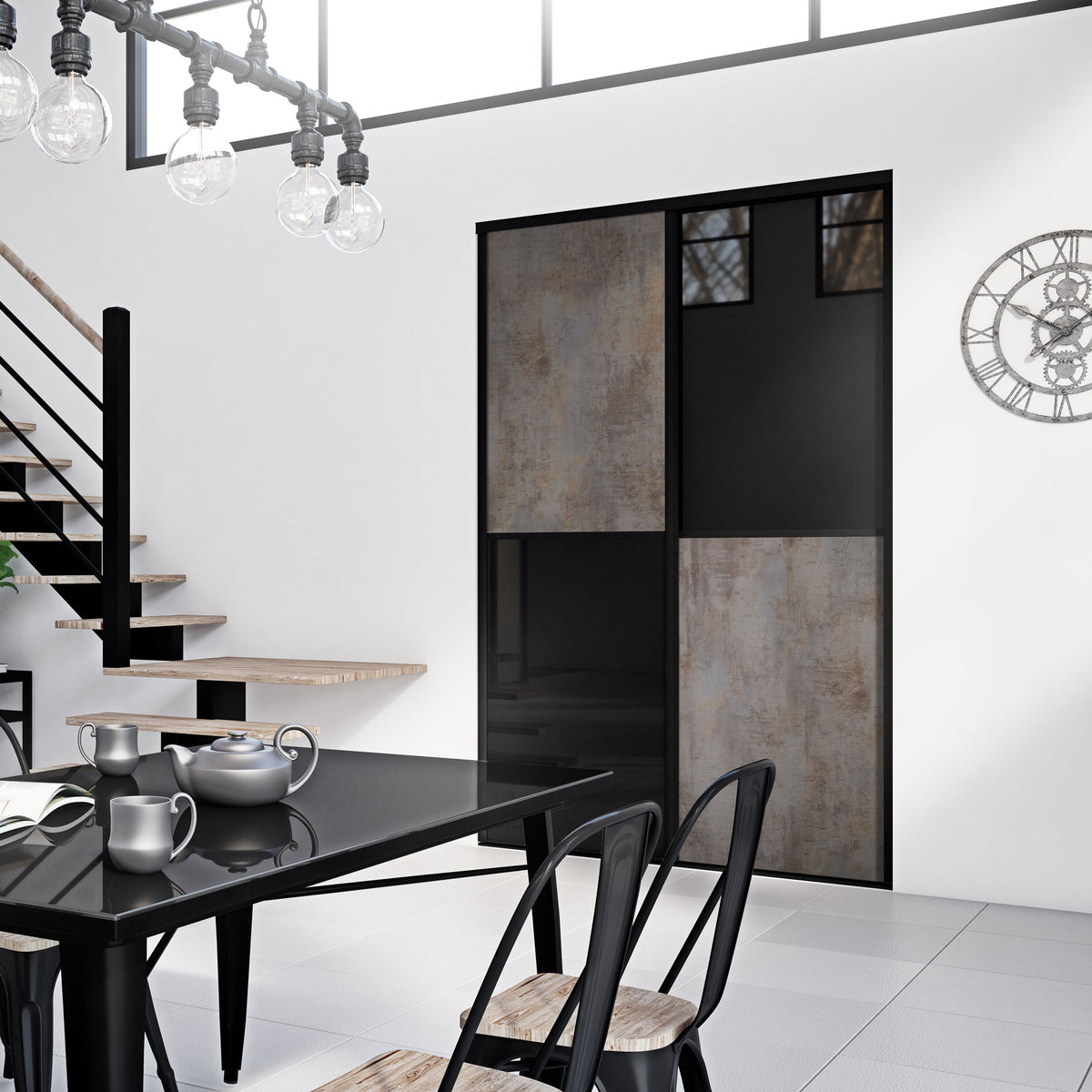 Ces deux matières associées à la perfection apporteront un côté très graphique à votre décoration. L'effet béton cuivré et le verre laqué noir sont mis en valeur par une finition en aluminium noir mat haut de gamme.