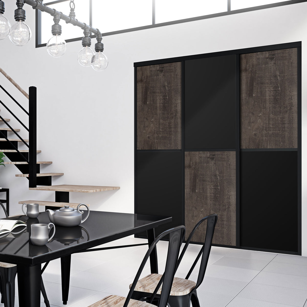 Ces deux matières associées à la perfection apporteront un côté très graphique à votre décoration. Le décor bois fumé brut et le noir intense sont mis en valeur par une finition en aluminium noir mat haut de gamme.