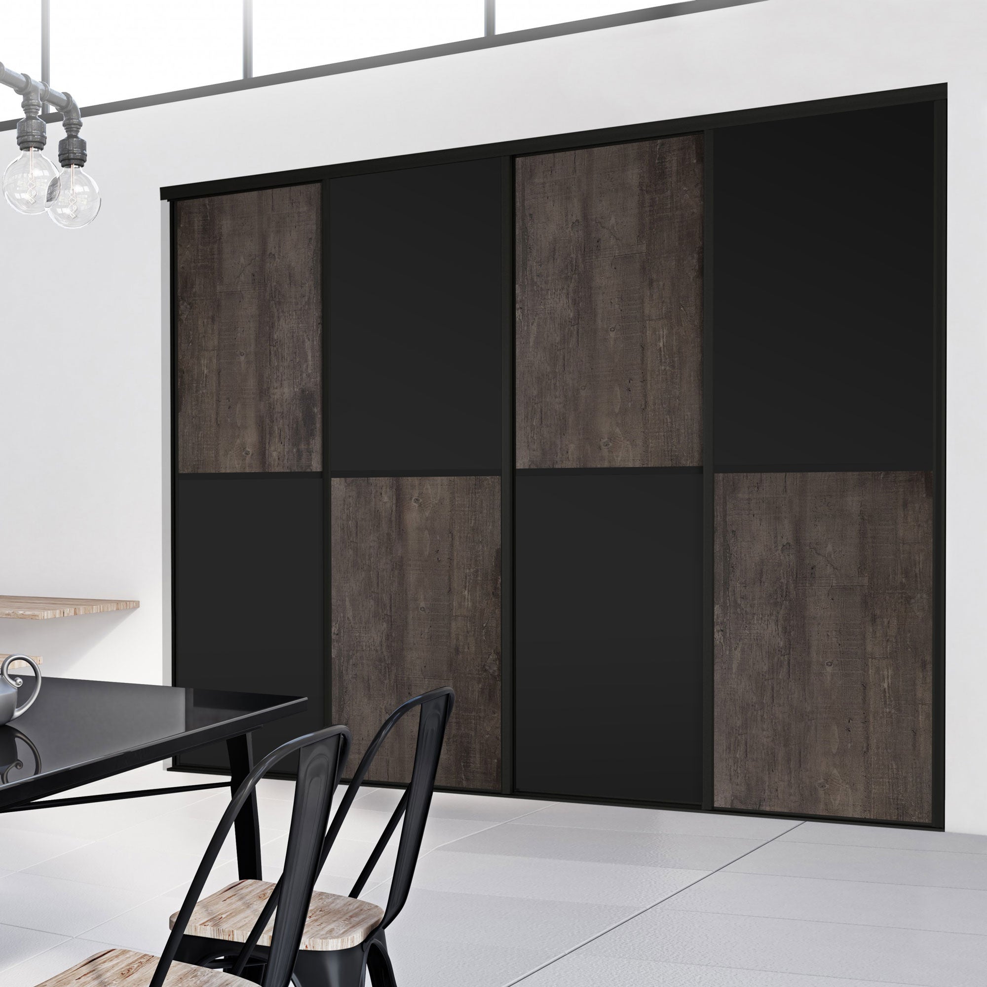Ces deux matières associées à la perfection apporteront un côté très graphique à votre décoration. Le décor bois fumé brut et le noir intense sont mis en valeur par une finition en aluminium noir mat haut de gamme.