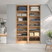 Ce dressing Chêne Blond de 2 espaces est composé () et de 12 étagères de rangement (idéales pour les vêtements pliés, comme les t-shirts et les pulls).