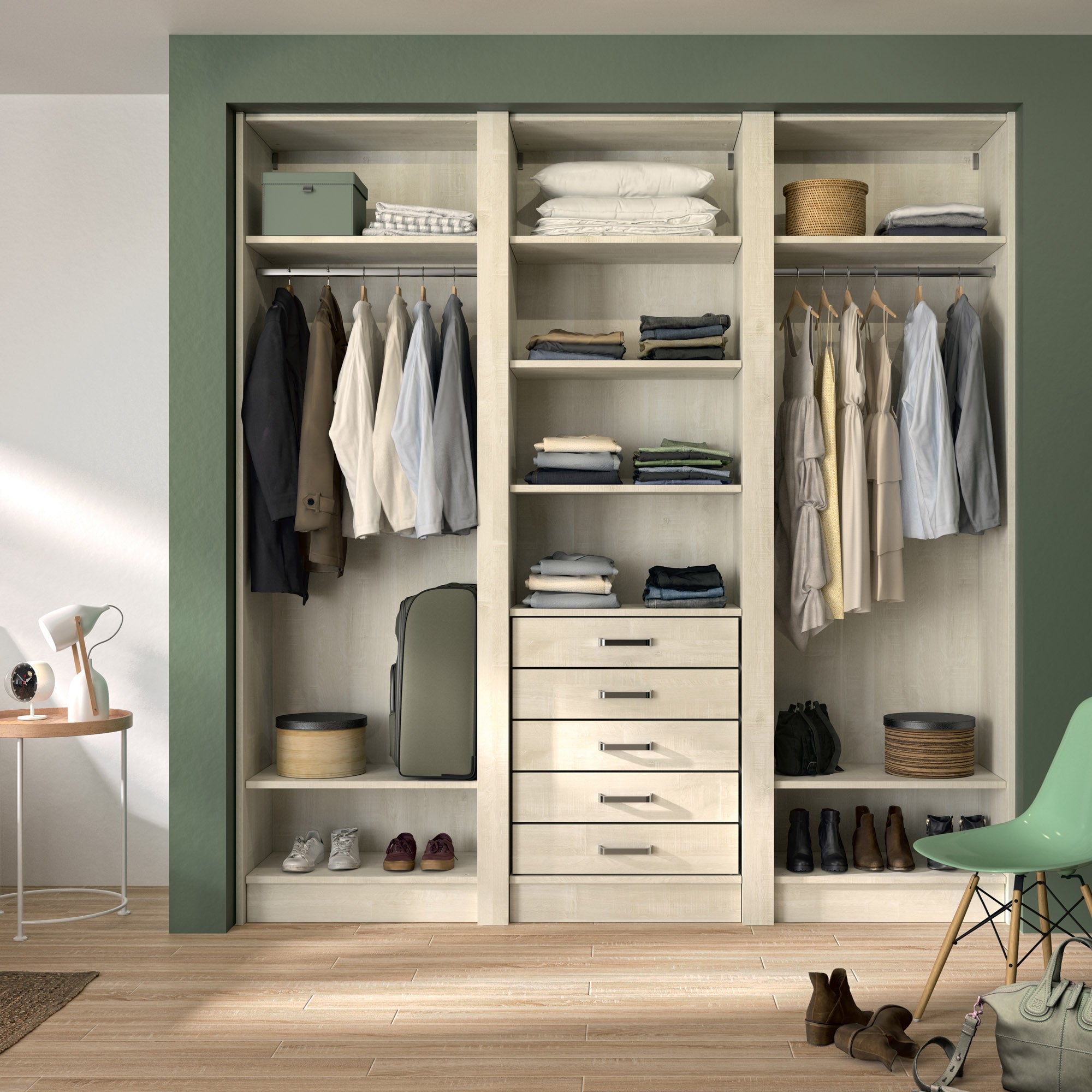 Les points forts : Fabriqué à vos dimensions. Epaisseur de la structure 22 mm, fond de 8 mm monté en rainure pour une rigidité parfaite. Des pieds de réglages permettent le bon ajustement de votre dressing. Konsilio est parfaitement adapté à une installation avec ou sans portes de placard Kazed.