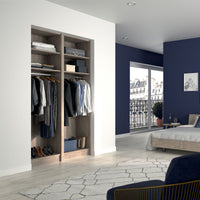 Ce dressing Chêne Cigare Brut de 2 espaces est composé de deux tringles (2 penderies longues pour les robes et manteaux) et de 4 étagères de rangement (idéales pour les vêtements pliés, comme les t-shirts et les pulls).