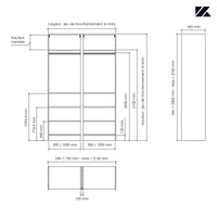 Les points forts : Fabriqué à vos dimensions. Epaisseur de la structure 22 mm, fond de 8 mm monté en rainure pour une rigidité parfaite. Des pieds de réglages permettent le bon ajustement de votre dressing. Konsilio est parfaitement adapté à une installation avec ou sans portes de placard Kazed.