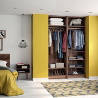 Ce dressing Noyer des Andes de 2 espaces est composé de deux tringles (1 penderie longue pour les robes et manteaux et 1 penderie courte pour les vêtements de type chemises, vestes) et de 6 étagères de rangement (idéales pour les vêtements pliés, comme les t-shirts et les pulls).