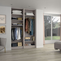 Ce dressing Moka de 2 espaces est composé de deux tringles (1 penderie longue pour les robes et manteaux et 1 penderie courte pour les vêtements de type chemises, vestes) et de 5 étagères de rangement (idéales pour les vêtements pliés, comme les t-shirts et les pulls).