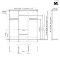 Ce dressing Moka de 3 espaces est composé de trois tringles (2 penderies longues pour les robes et manteaux et 1 penderie courte pour les vêtements de type chemises, vestes), de 7 étagères de rangement (idéales pour les vêtements pliés, comme les t-shirts et les pulls), et d'un tiroir simple (pour accueillir les accessoires et les ceintures).