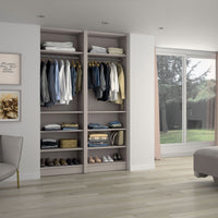 Ce dressing Moka de 2 espaces est composé de deux tringles (2 penderies courtes pour les vêtements de type chemises, vestes) et de 8 étagères de rangement (idéales pour les vêtements pliés, comme les t-shirts et les pulls).