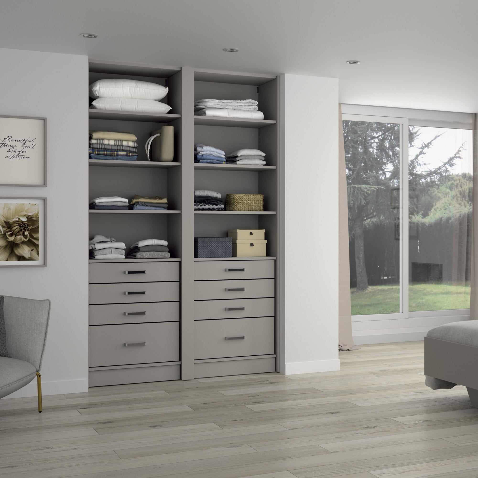 Les points forts : Fabriqué à vos dimensions. Epaisseur de la structure 22 mm, fond de 8 mm monté en rainure pour une rigidité parfaite. Des pieds de réglages permettent le bon ajustement de votre dressing. Konsilio est parfaitement adapté à une installation avec ou sans portes de placard Kazed.
