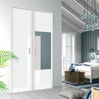 Un vent frais rafraîchissant souffle sur votre déco ! Son miroir argent et sa structure en acier laqué gris subliment ces portes de placard en verre laqué blanc pur. L’ensemble, frais et lumineux, est idéal pour ensoleiller un intérieur trop sombre.